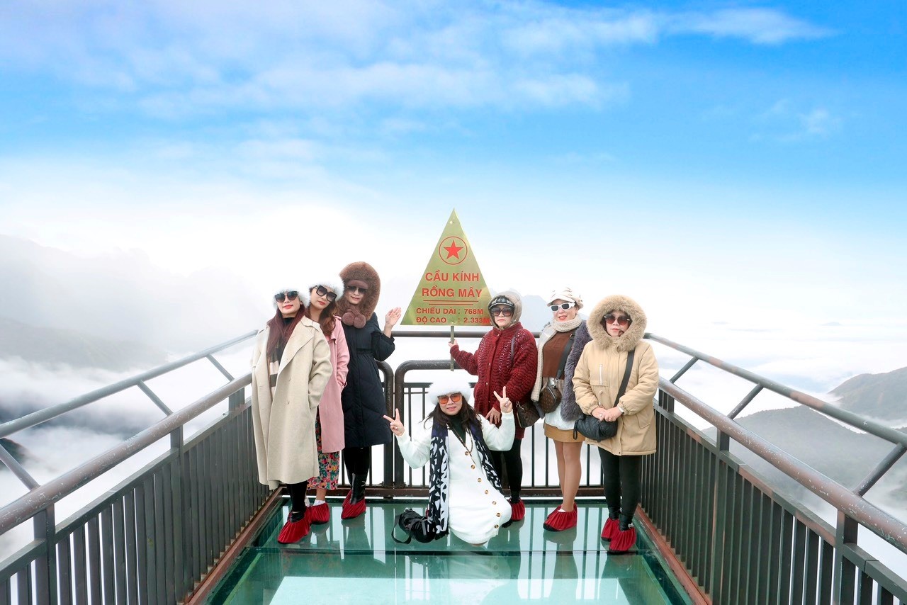 Du khách check-in tại Cầu kính Rồng Mây