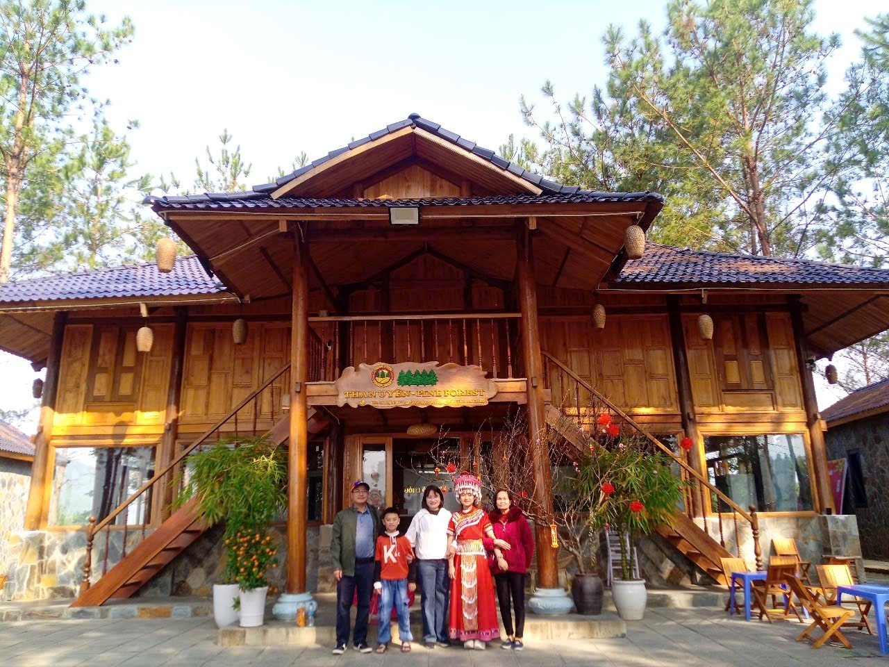 Du khách chụp ảnh lưu niệm tại nhà hàng Than Uyên-pine forst trong điểm du lịch Đồi thông Than Uyên