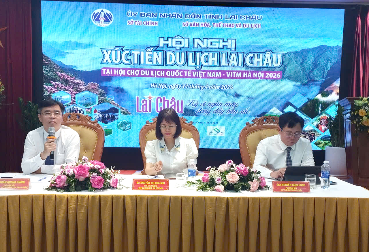 Chiều 11/4, tại Hà Nội, trong khuôn khổ Hội chợ Du lịch Quốc tế Việt Nam – VITM 2026, Sở Tài chính tỉnh Lai Châu đã tổ chức Hội nghị xúc tiến du lịch với chủ đề “Lai Châu – Kỳ vĩ ngàn mây, đong đầy bản sắc”, nhằm quảng bá tiềm năng, giới thiệu sản phẩm du lịch và tăng cường kết nối, thu hút đầu tư phát triển du lịch địa phương.