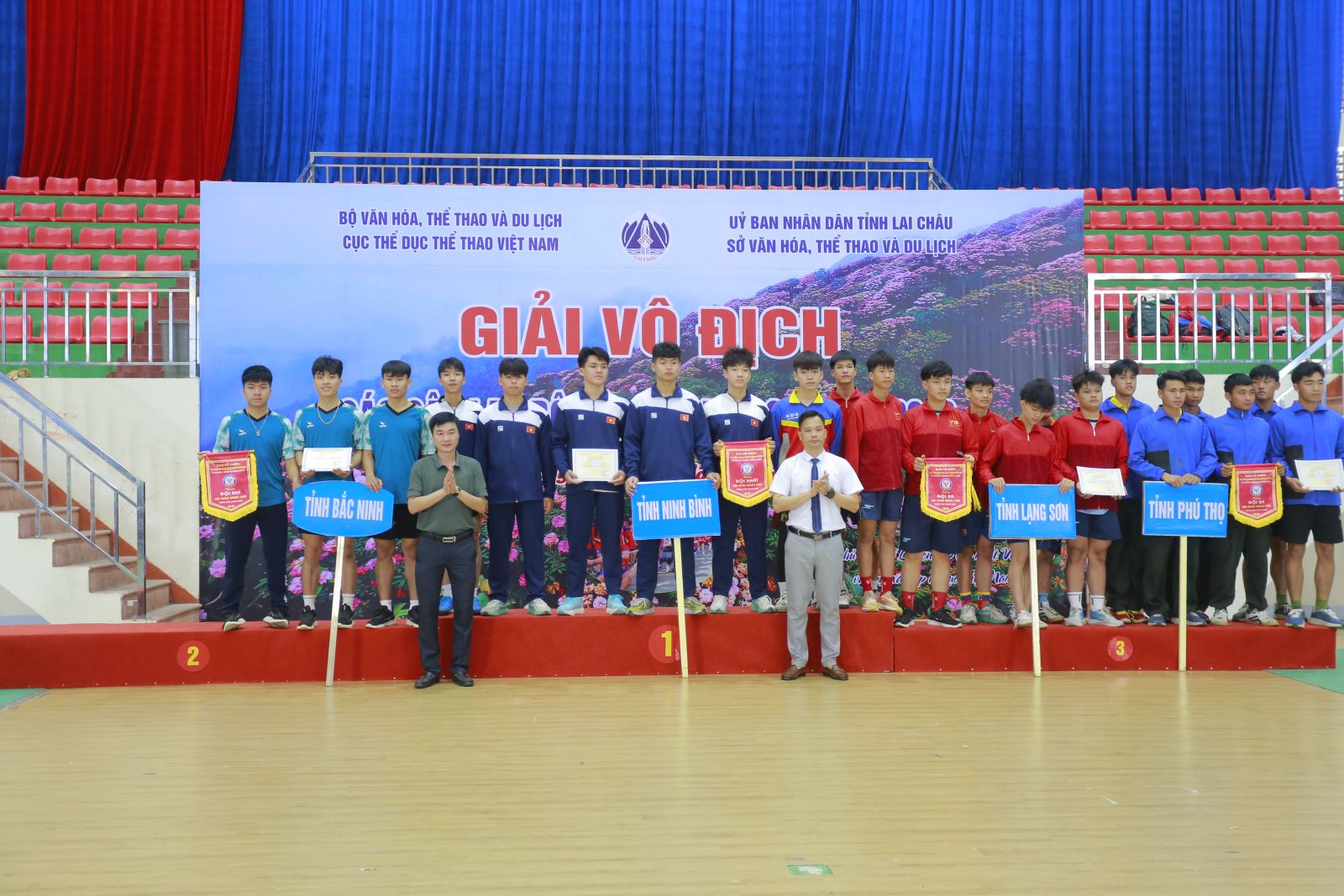 Ban Tổ chức trao giải cho các đội đạt thành tích nội dung 600kg nam (8 người).