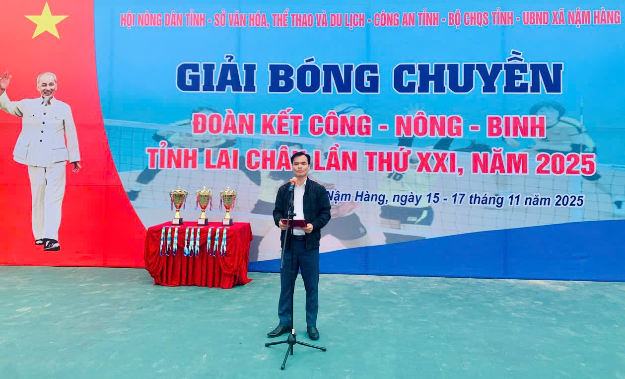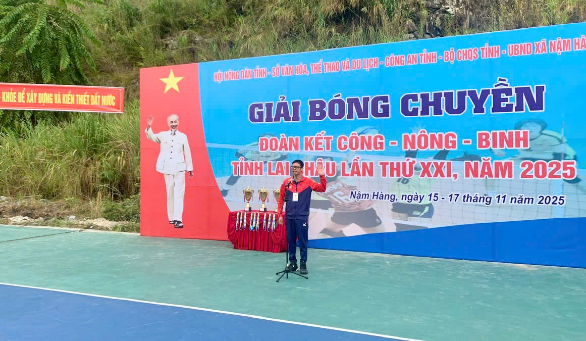 Sáng nay (15/11), tại xã Nậm Hàng, Ban Tổ chức Giải Bóng chuyền Đoàn kết Công - Nông - Binh tỉnh Lai Châu lần thứ XXI, năm 2025 đã tổ chức Lễ Khai mạc với sự tham dự của 13 đội bóng đến từ các cơ quan, đơn vị, địa phương trong tỉnh.