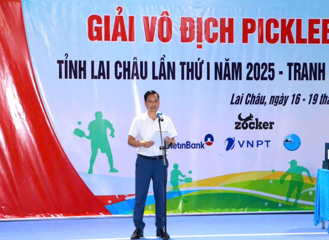 Đồng chí Trần Văn Công – Phó Giám đốc Sở Văn hóa, Thể thao và Du lịch, Phó Trưởng Ban Tổ chức Giải phát biểu khai mạc Giải Vô địch Pickleball tỉnh Lai Châu lần thứ I năm 2025 – Tranh Cúp Zocker.