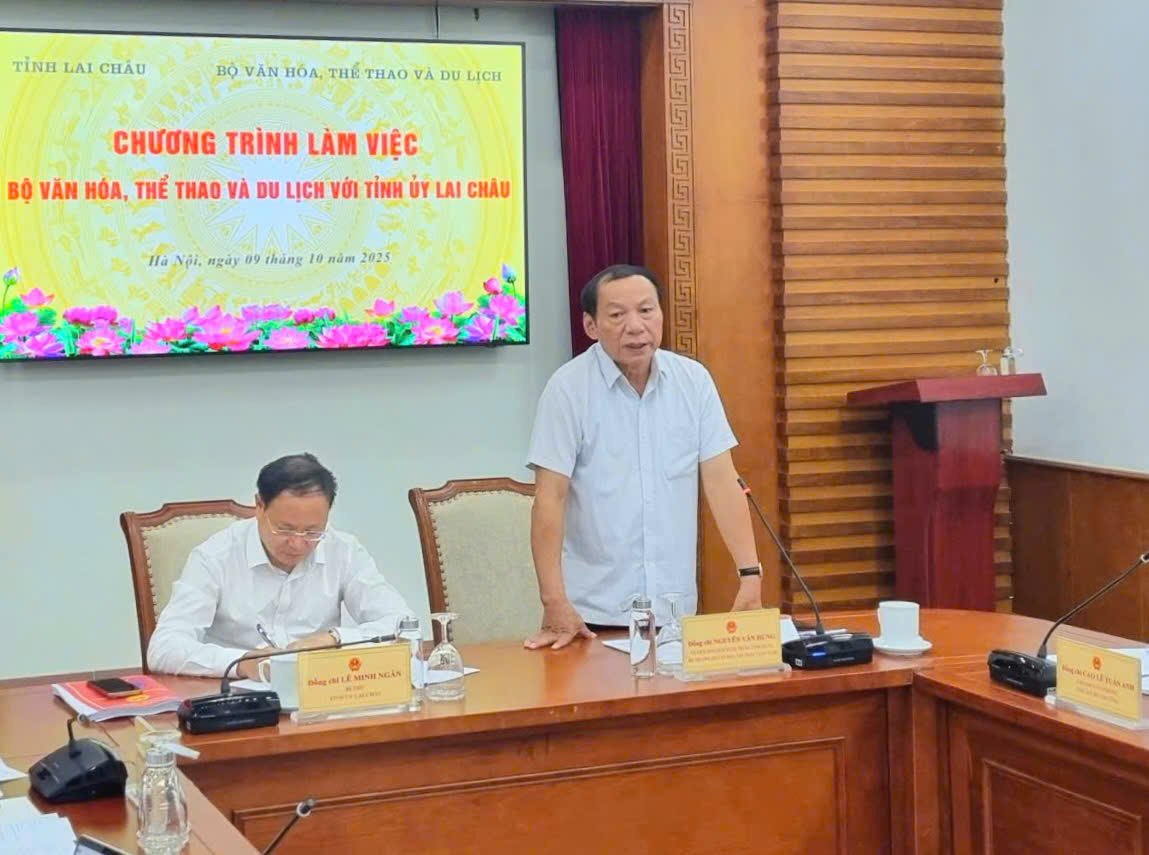 Phát biểu kết luận, Bộ trưởng Nguyễn Văn Hùng ghi nhận nỗ lực của Lai Châu trong bảo tồn và phát huy giá trị văn hóa truyền thống, gắn văn hóa với phát triển du lịch. Bộ trưởng khẳng định Bộ sẽ đồng hành cùng địa phương trong triển khai các dự án, hướng tới mục tiêu “Văn hóa là nền tảng – Thông tin là mạch dẫn – Thể thao là sức mạnh – Du lịch là nhịp cầu kết nối”.