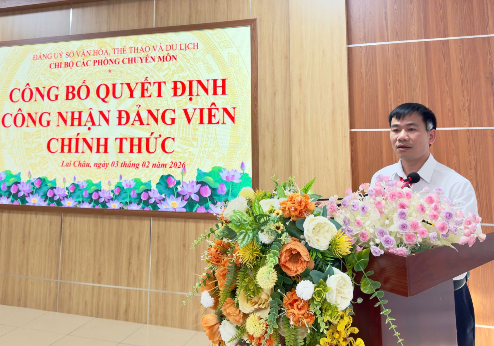 Chiều nay (03/02), Đảng bộ Sở Văn hóa, Thể thao và Du lịch đã tổ chức công bố các Quyết định công nhận đảng viên chính thức và kết nạp đảng viên mới tại các chi bộ trực thuộc, góp phần củng cố tổ chức Đảng và tăng cường lực lượng đảng viên trong toàn Đảng bộ.