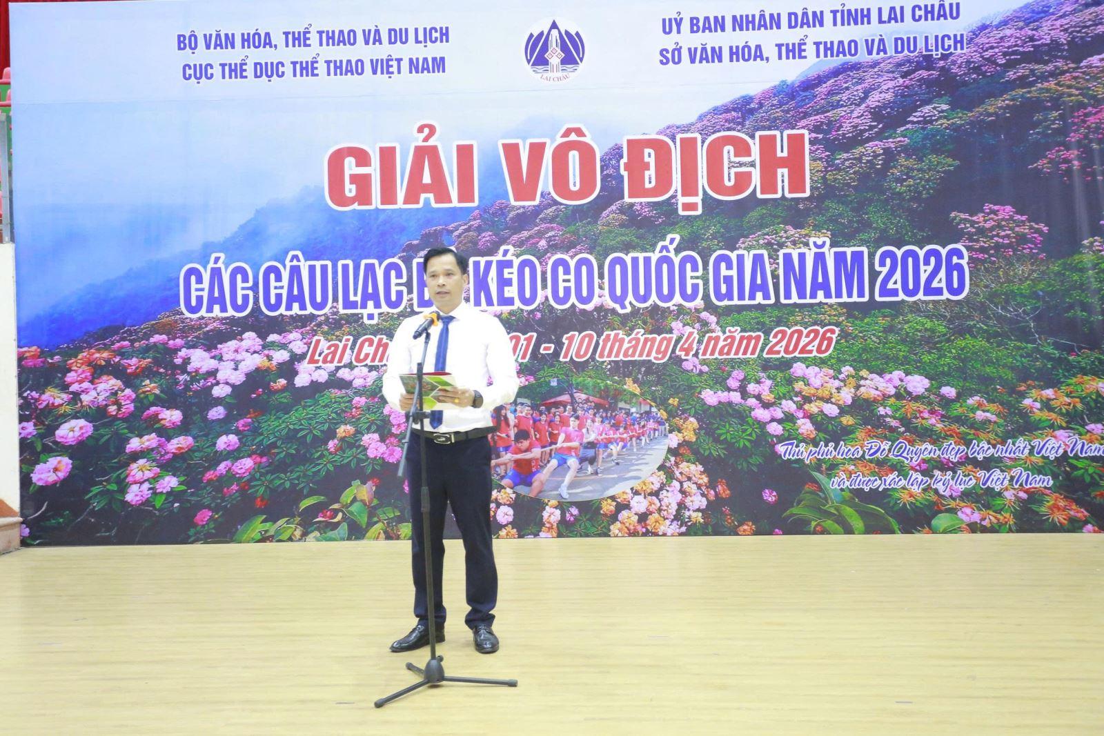 Phát biểu khai mạc, đồng chí Trần Văn Công, Phó Giám đốc Sở Văn hóa, Thể thao và Du lịch, Phó Trưởng Ban Tổ chức nhấn mạnh: việc đăng cai tổ chức giải trong dịp cả nước hướng tới các ngày lễ lớn năm 2026 là niềm vinh dự của tỉnh Lai Châu. Giải đấu không chỉ mang ý nghĩa thể thao mà còn góp phần tôn vinh môn kéo co một môn thể thao dân gian giàu bản sắc, thể hiện tinh thần đoàn kết, sức mạnh tập thể và ý chí bền bỉ.