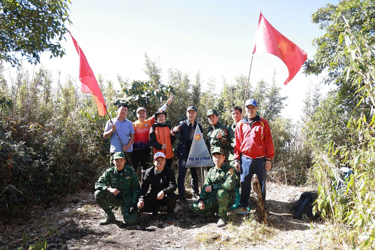 Đoàn công tác chụp ảnh lưu niệm tại khu vực đỉnh Pu Si Lung.