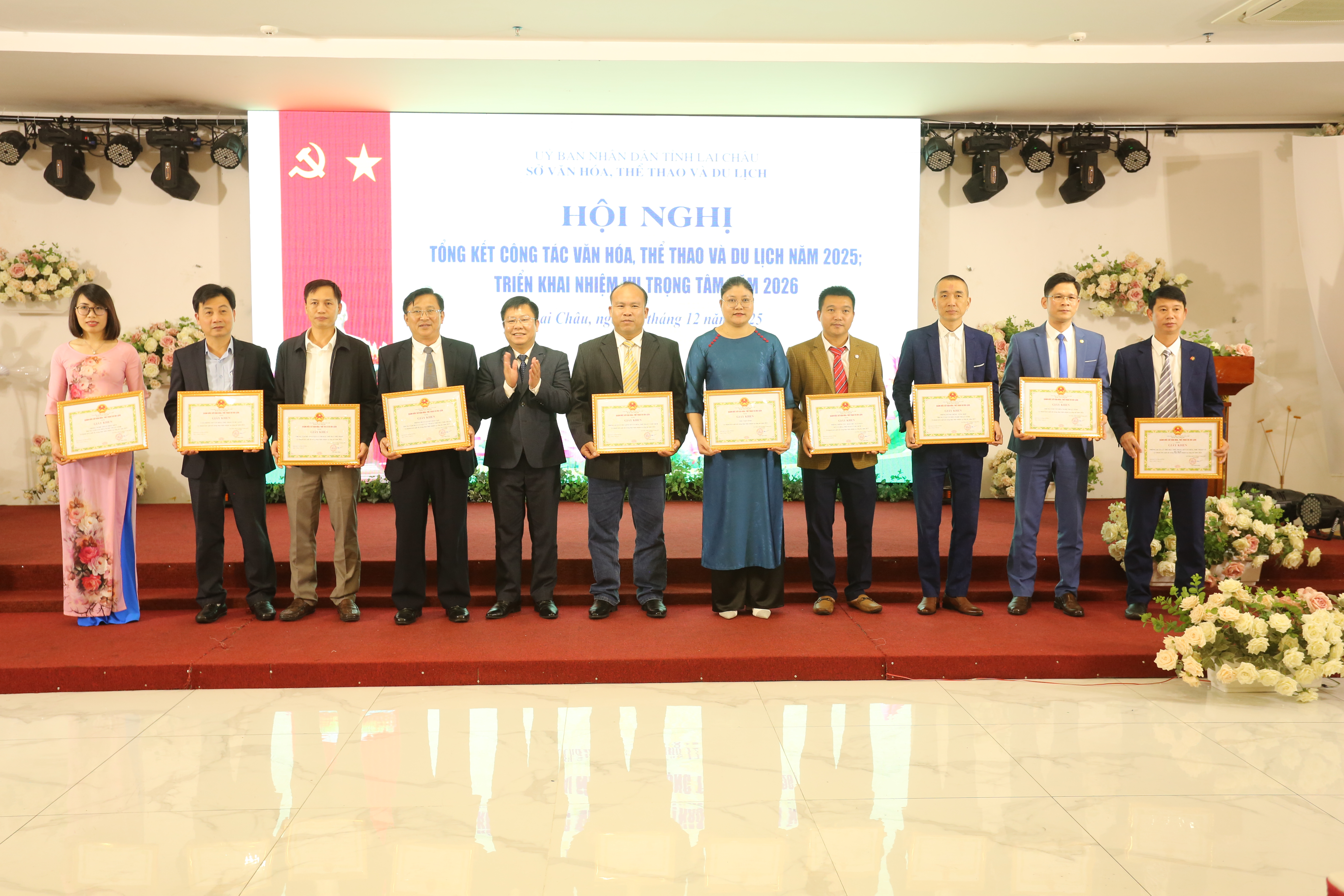 Nhân dịp này, Sở Văn hóa, Thể thao và Du lịch đã biểu dương, khen thưởng 14 tập thể; công nhận 187 lao động tiên tiến, 43 chiến sĩ thi đua cơ sở; tặng Giấy khen cho 10 tập thể, 51 cá nhân có thành tích xuất sắc trong thực hiện nhiệm vụ năm 2025.