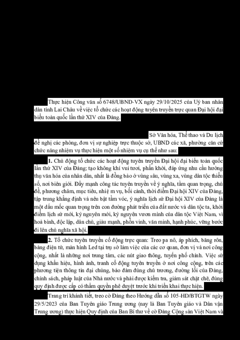 | Tiêu đề văn bản | V/v tuyên truyền cổ động trực quan Đại hội Đại biểu toàn quốc lần thứ XIV của Đảng | ||