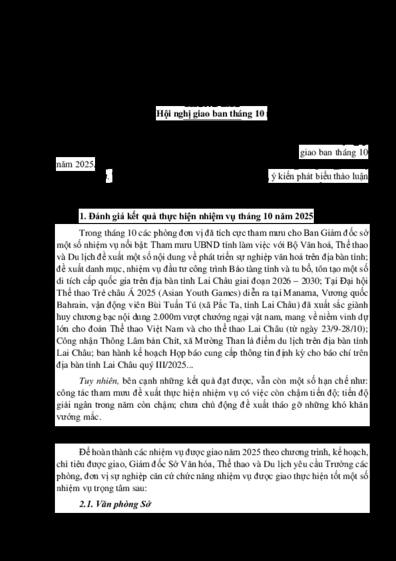 | Tiêu đề văn bản | THÔNG BÁO Kết luận Hội nghị giao ban tháng 10 năm 2025 | ||