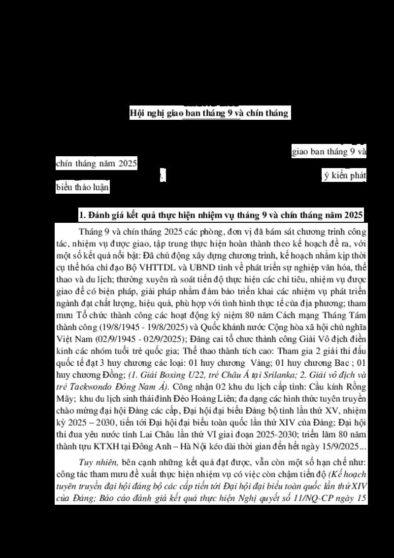 Tiêu đề văn bản | THÔNG BÁO Kết luận Hội nghị giao ban tháng 9 và chín tháng năm 2025 | ||