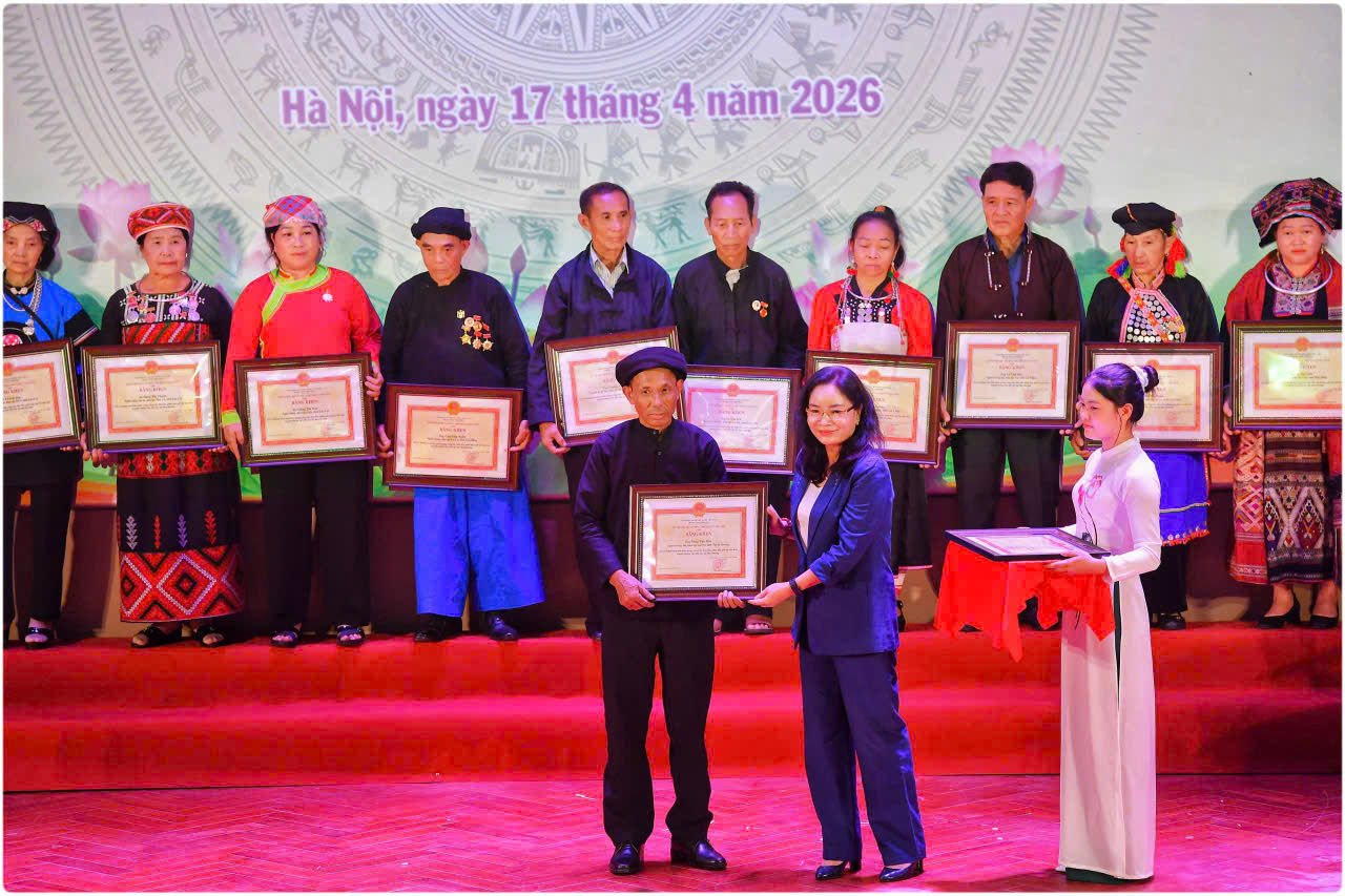 Vừa qua, từ ngày 17-18/4/2026, đoàn đại biểu các dân tộc thiểu số tỉnh Lai Châu đã tham dự Hội nghị toàn quốc triển khai công tác văn hóa dân tộc và tuyên dương già làng, trưởng bản, nghệ nhân, người có uy tín tại Làng Văn hóa Du lịch các dân tộc Việt Nam (Đoài Phương, Hà Nội).