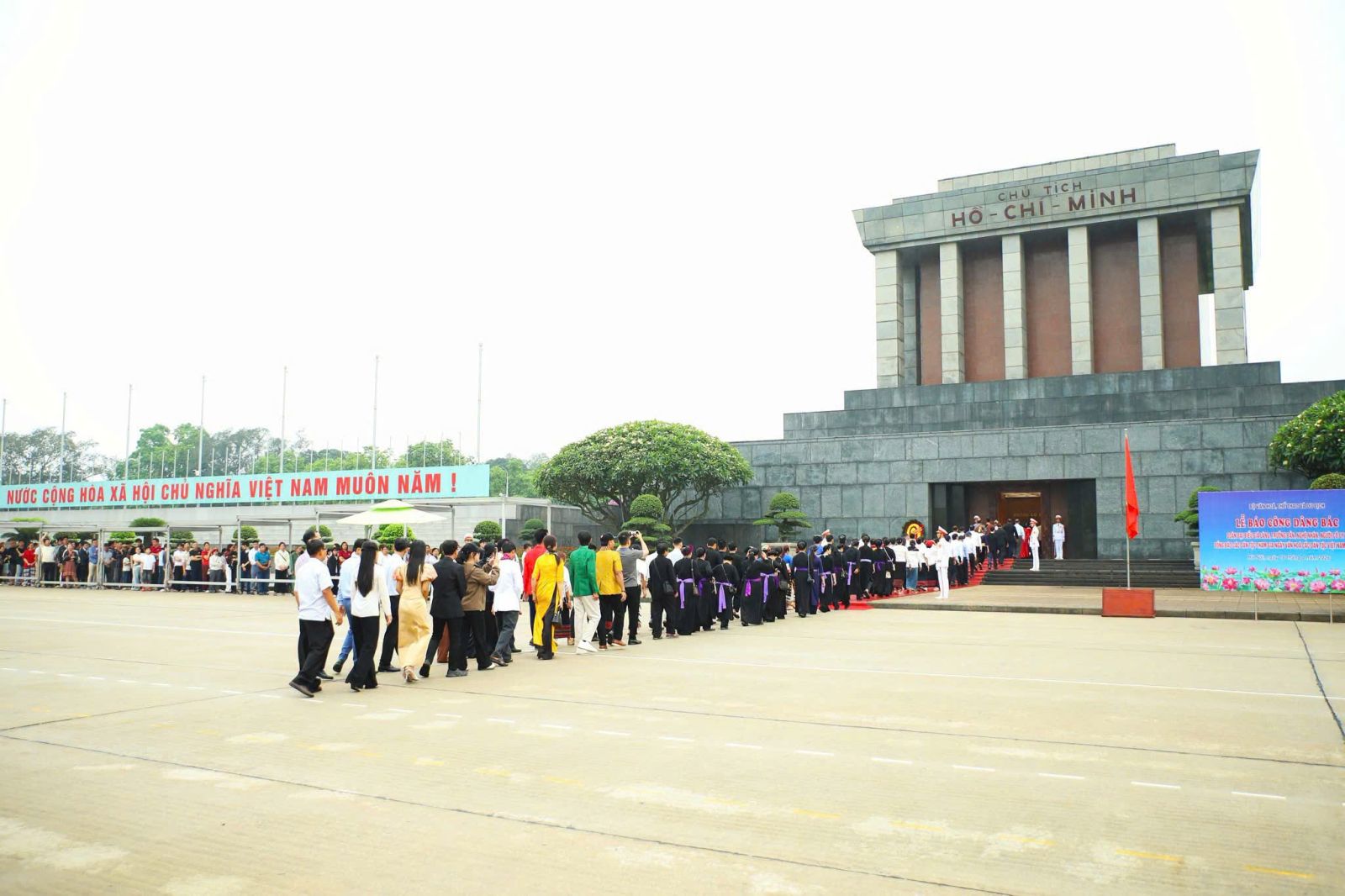 Đại biểu tỉnh Lai Châu trang nghiêm trước Lăng Chủ tịch Hồ Chí Minh.