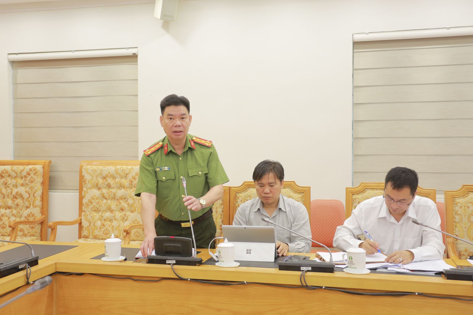 Đồng chí lãnh đạo Công an tỉnh đóng góp ý kiến tại hội nghị.