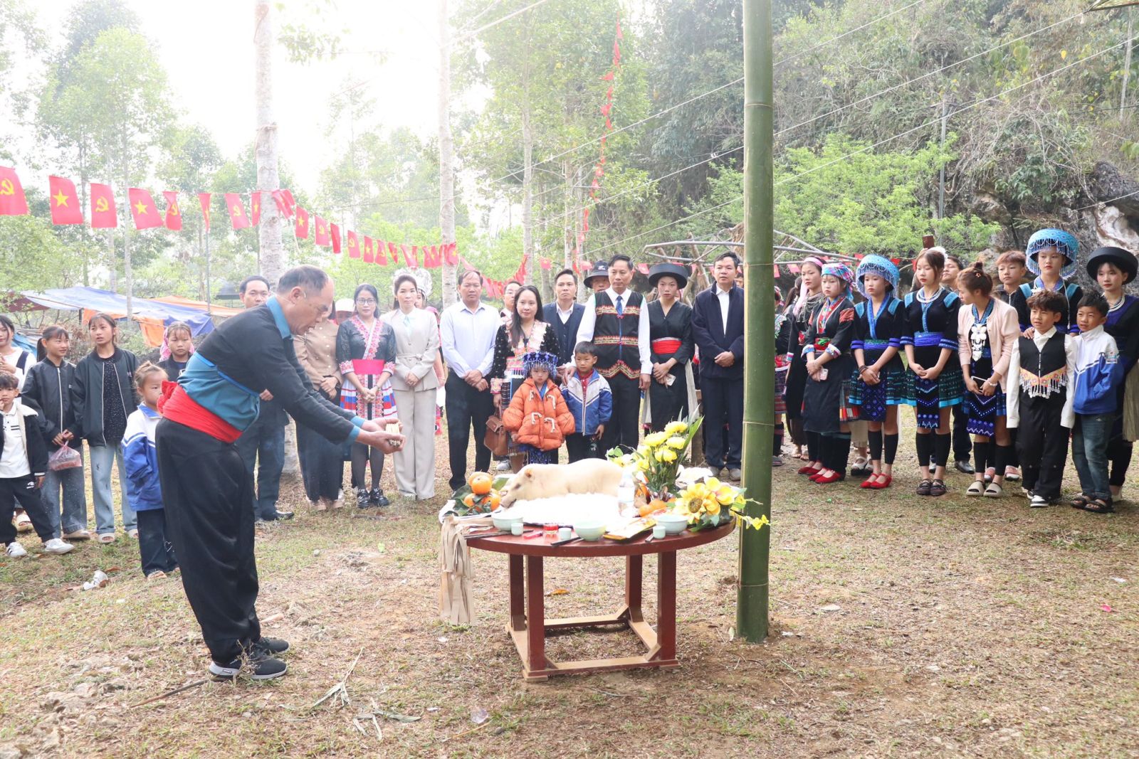 Thầy cúng thực hiện nghi lễ cúng cây nêu trong khuôn khổ Lễ hội Gầu Tào Xuân Bính Ngọ 2026.