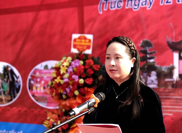 Đồng chí Nguyễn Lệ Thủy – Phó Chủ tịch UBND phường Đoàn Kết phát biểu tại Lễ khai hội Đền thờ Lê Lợi Xuân Bính Ngọ 2026.