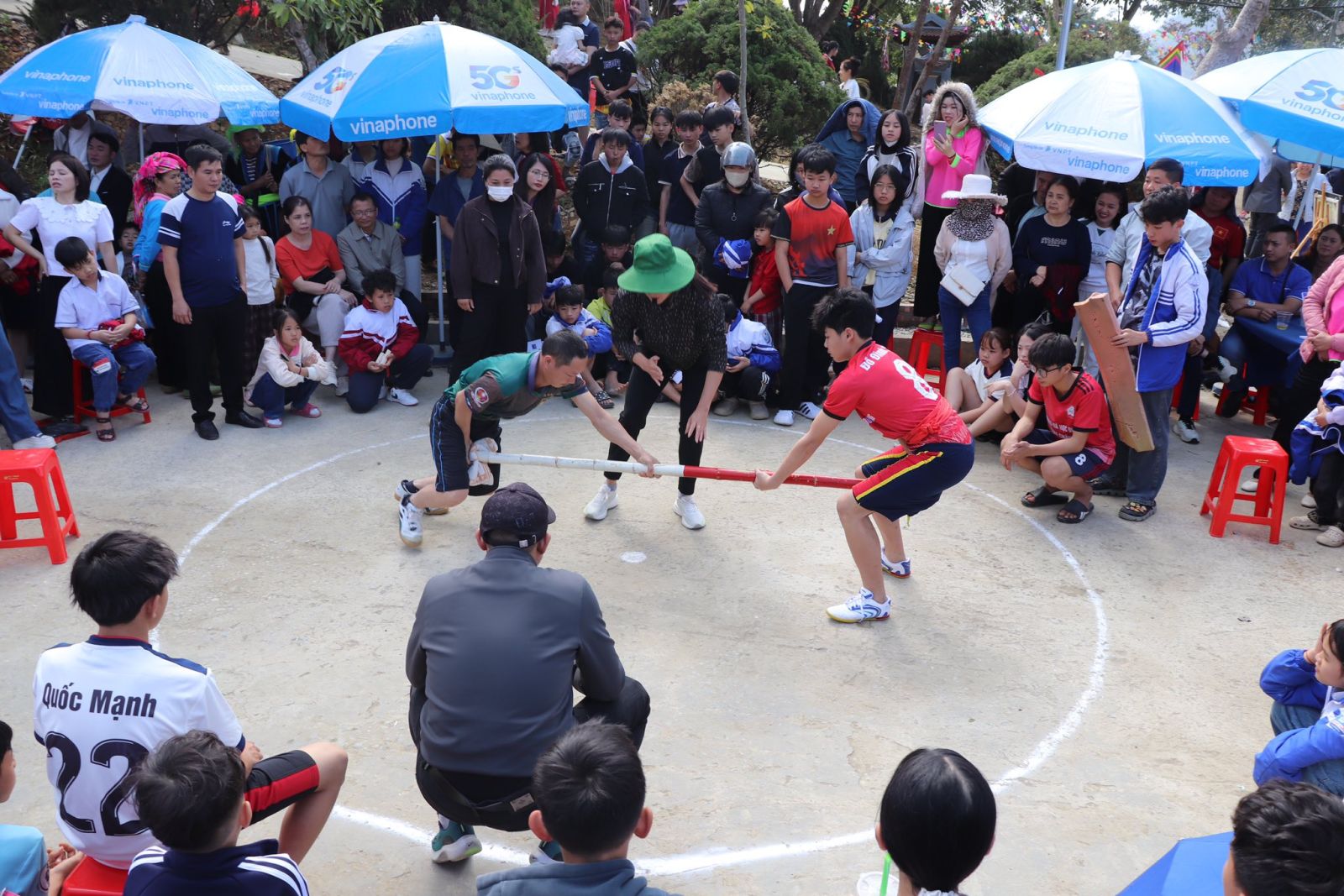 Nhân dân phường Đoàn Kết hào hứng tham gia thi đấu môn đẩy gậy trong khuôn khổ Lễ hội Đền thờ Lê Lợi.