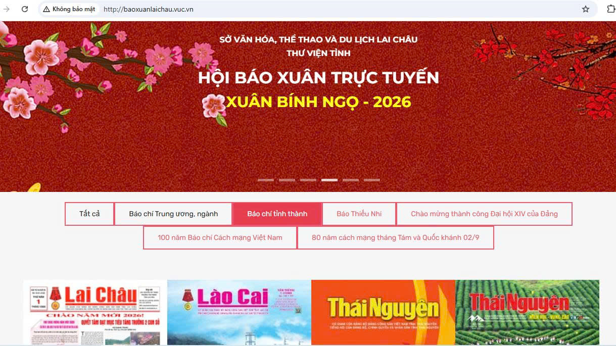 Để khai thác hiệu quả nguồn báo xuân của tỉnh, của toàn quốc và các ngành, Thư viện tỉnh Lai Châu thực hiện Triển lãm Báo xuân trực tuyến năm 2026, giúp kết nối, liên thông, chia sẻ cơ sở dữ liệu báo xuân các tỉnh, thành, ngành trên toàn quốc mọi lúc, mọi nơi; nâng cao năng lực hoạt động của thư viện và hình thành mạng lưới thư viện hiện đại; đảm bảo cung ứng dịch vụ đáp ứng đa dạng phương thức phục vụ nhu cầu của người sử dụng thư viện; thu hút đông đảo người dân quan tâm, sử dụng dịch vụ thư viện, góp phần nâng cao dân trí, thực hiện thắng lợi các mục tiêu xây dựng xã hội học tập.