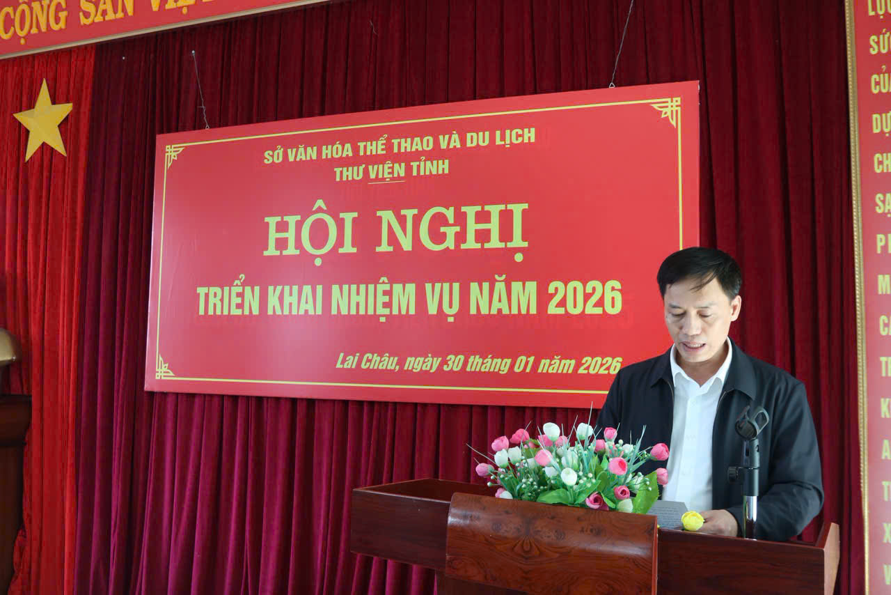 Phát biểu chỉ đạo tại Hội nghị, đồng chí Trần Quang Kháng, Phó Giám đốc Sở Văn hóa, Thể thao và Du lịch đánh giá cao những kết quả Thư viện tỉnh đã đạt được trong năm 2025, tiếp tục phát huy kết quả đã đạt được để góp phần nâng cao phát triển văn hóa đọc trong năm 2026, đề nghị toàn thể viên chức, người lao động Thư viện tỉnh luôn duy trì mối quan hệ đoàn kết, chủ động sáng tạo, thi đua phấn đấu hoàn thành các chỉ tiêu kế hoạch đã đề ra, đưa sự nghiệp Thư viện ngày càng phát triển.