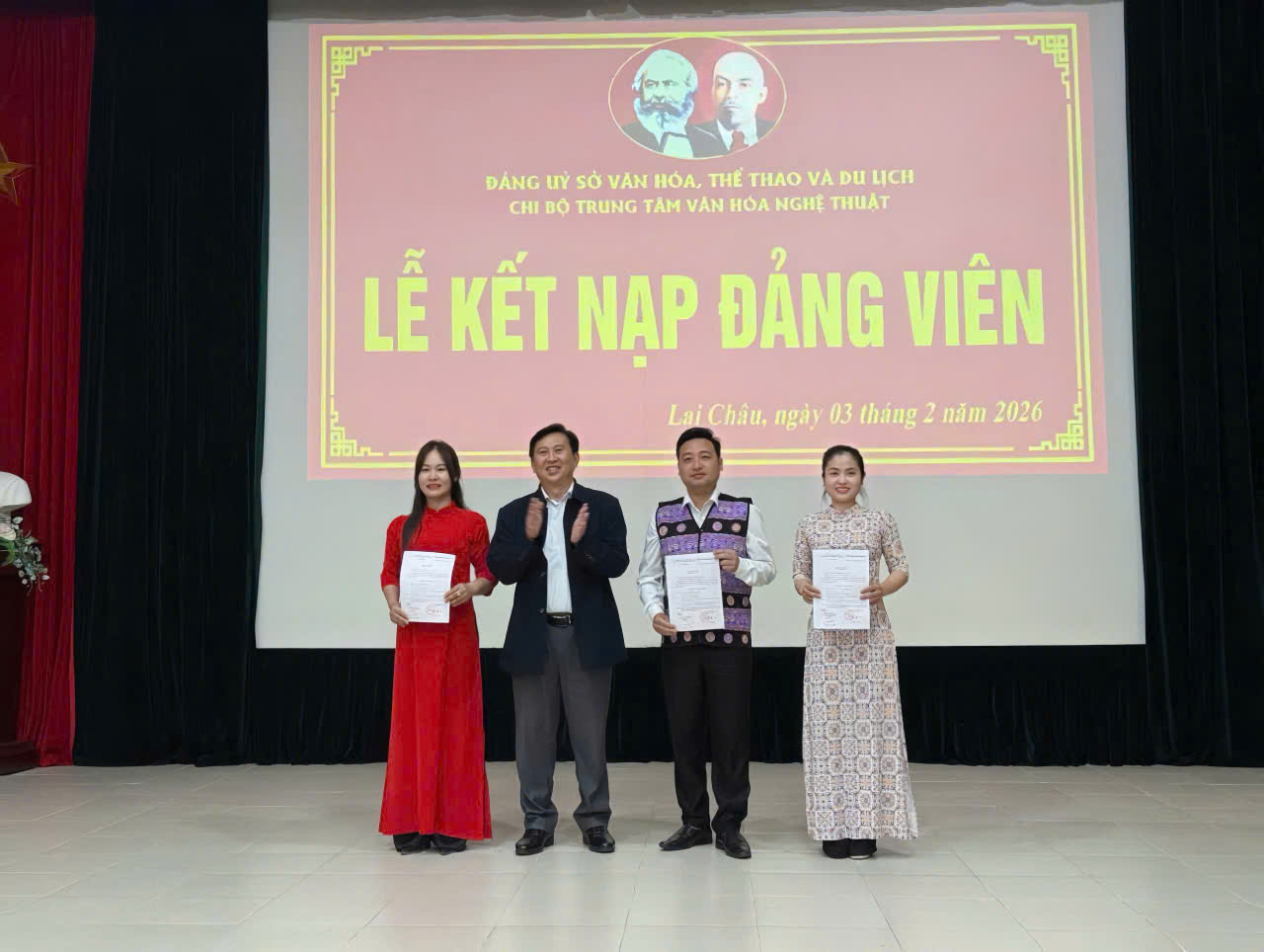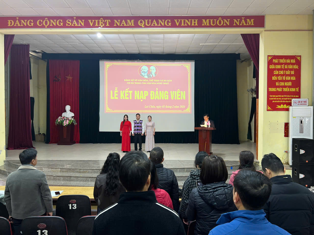 Chiều ngày 03/02/2026, Chi bộ Trung tâm Văn hoá Nghệ thuật tỉnh tổ chức Lễ Kết nạp cho 03 đảng viên mới, nâng tổng số đảng viên của Chi bộ lên 47.