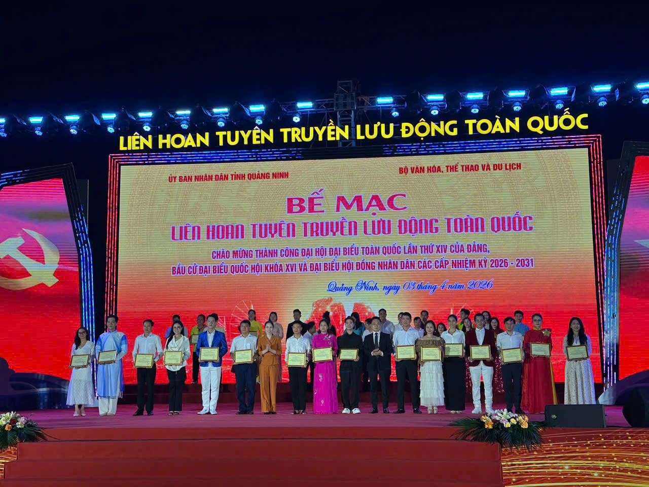 Từ ngày 30/3 đến ngày 03/4 vừa qua, đoàn tuyên truyền lưu động tỉnh Lai Châu đã tham gia Liên hoan Tuyên truyền Lưu động toàn quốc chào mừng thành công Đại hội đại biểu toàn quốc lần thứ XIV của Đảng, Bầu cử Đại biểu Quốc hội khóa XVI và Đại biểu Hội đồng Nhân dân các cấp nhiệm kỳ 2026 – 2031.